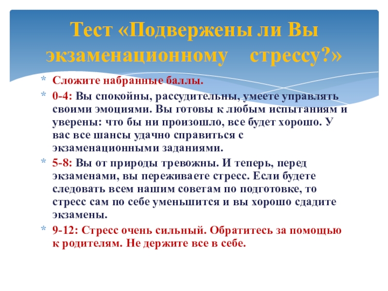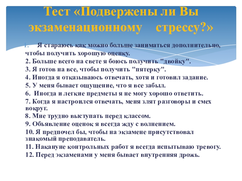 Тест «Подвержены ли Вы экзаменационному стрессу?»