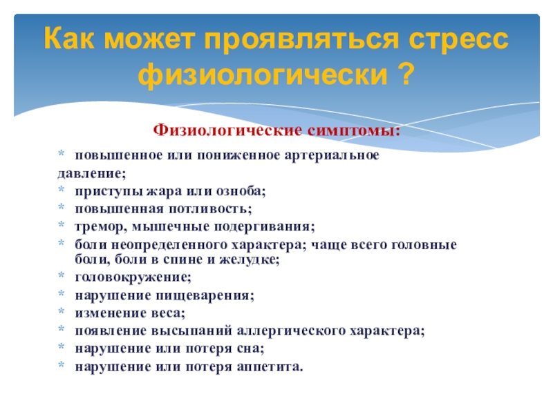 Как может проявляться стресс физиологически ?