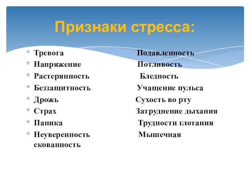 Признаки стресса: