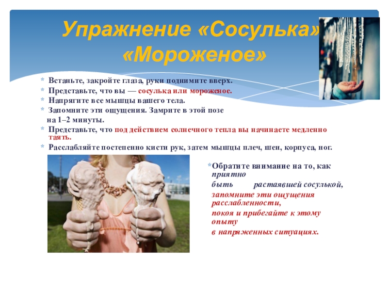 Упражнение «Сосулька», «Мороженое»