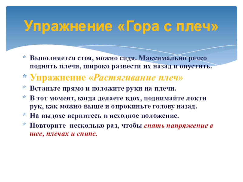 Упражнение «Гора с плеч»
