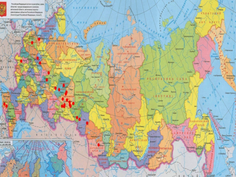 пункты области обозначены на подробной карте Челябинской области. В составе области 16 городов, 27 районов, 27 поселков городского типа и 247 сел.