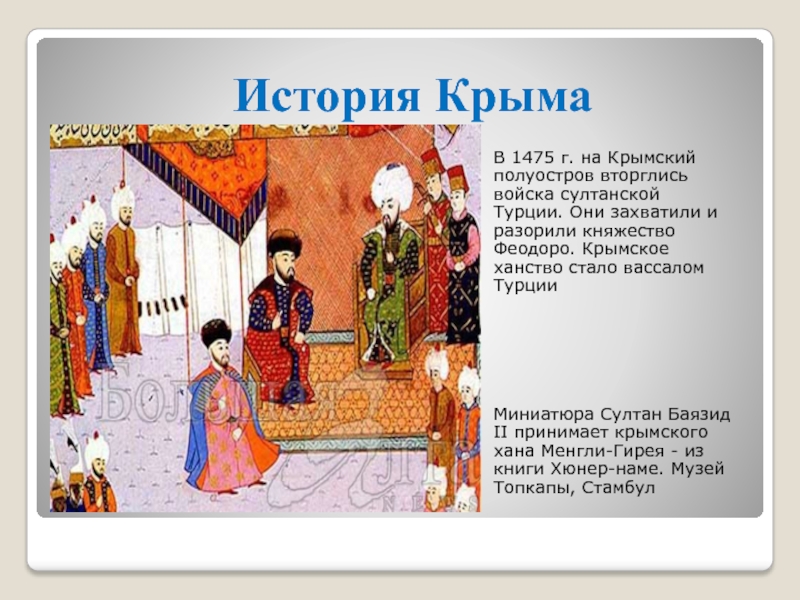 В 1475 г. на Крымский полуостров вторглись войска султанской Турции.