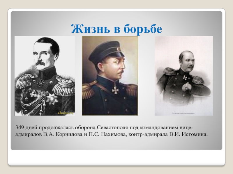 В.А. Корнилова и П.С. Нахимова, контр-адмирала В.И. Истомина.