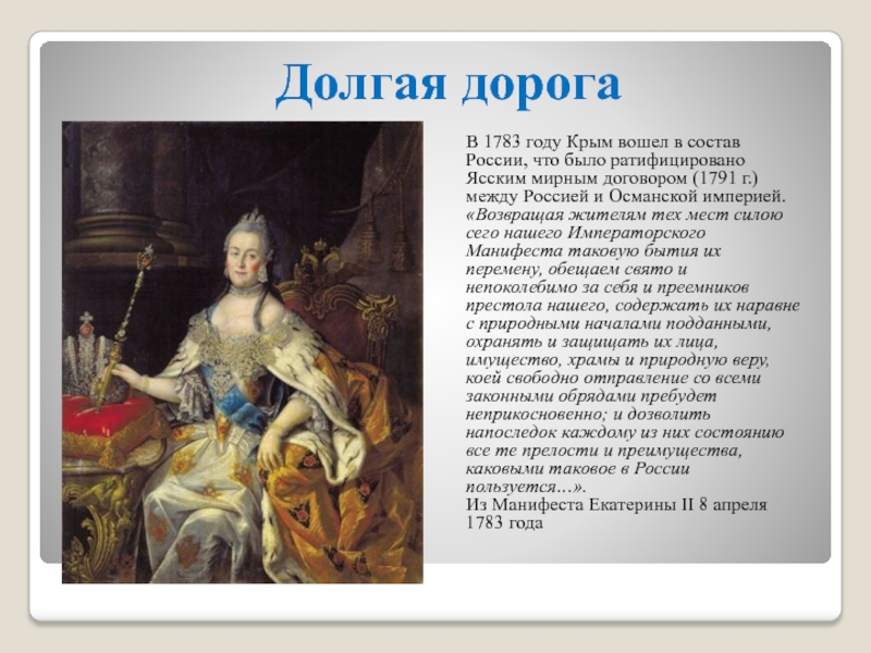Из Манифеста Екатерины II 8 апреля 1783 года
