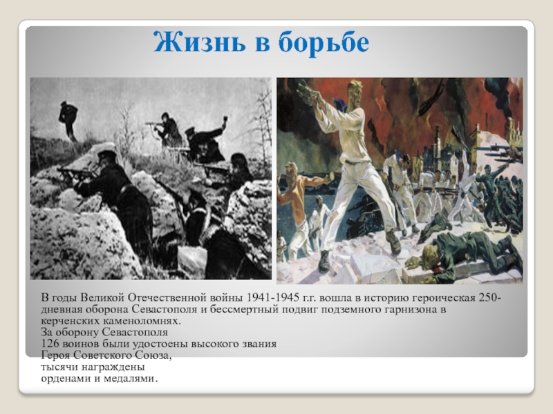 в историю героическая 250-дневная оборона Севастополя и бессмертный подвиг подземного гарнизона в керченских каменоломнях.
