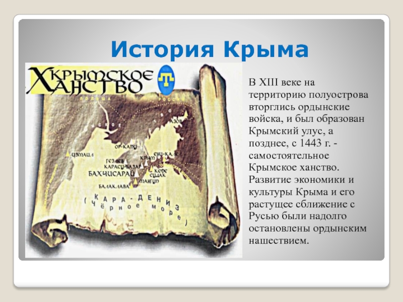 и был образован Крымский улус, а позднее, с 1443 г. - самостоятельное Крымское ханство. Развитие экономики и культуры Крыма и его растущее сближение с Русью были надолго остановлены ордынским нашествием.