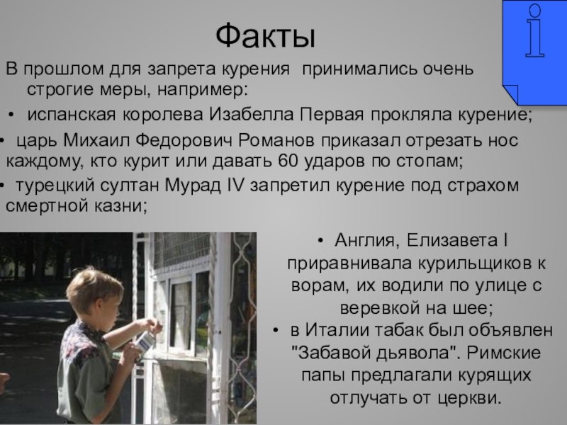 Англия, Елизавета I приравнивала курильщиков к ворам, их водили по улице с веревкой на шее;