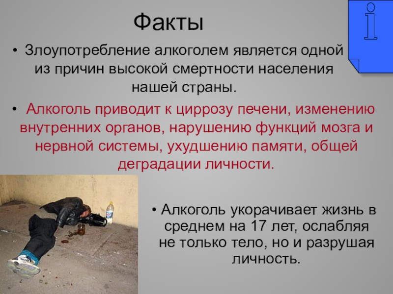 Алкоголь укорачивает жизнь в среднем на 17 лет, ослабляя не только тело, но и разрушая личность.
