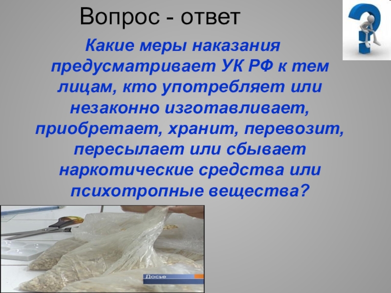 Наркотики запрещены законом. Они опасны для здоровья, губительны - для человека.