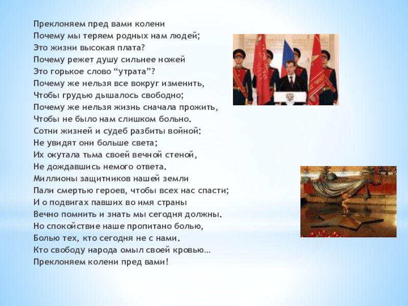 Слайд 16Преклоняем пред вами колени