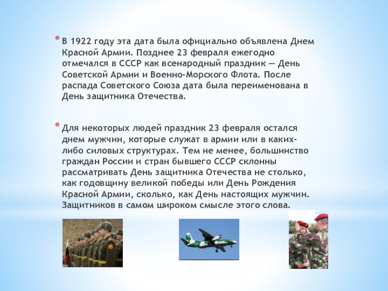 Слайд 4В 1922 году эта дата была официально объявлена Днем Красной Армии.