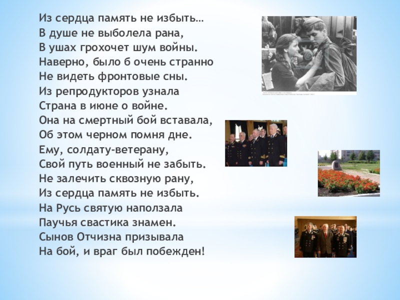 Слайд 7Из сердца память не избыть…