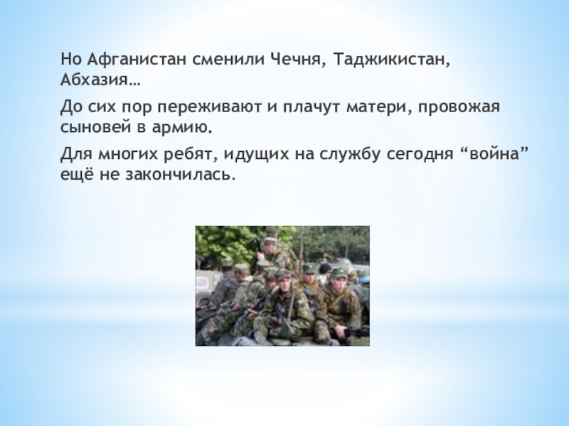 Слайд 13Но Афганистан сменили Чечня, Таджикистан, Абхазия…