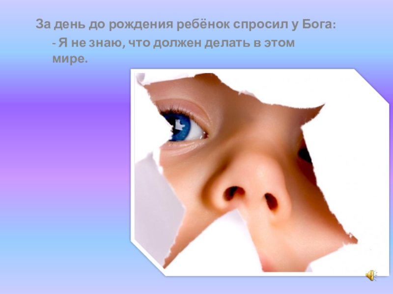 Слайд 2 За день до рождения ребёнок спросил у Бога: