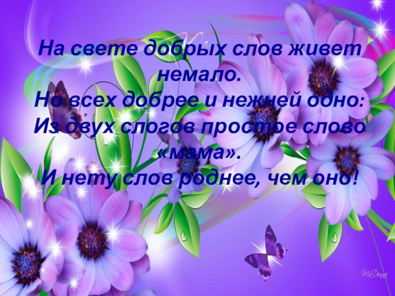 Слайд 20На свете добрых слов живет немало. Но всех добрее и нежней одно: Из