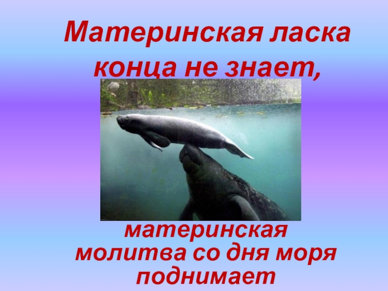 Материнская ласка конца не знает,    материнская молитва со дня моря поднимает