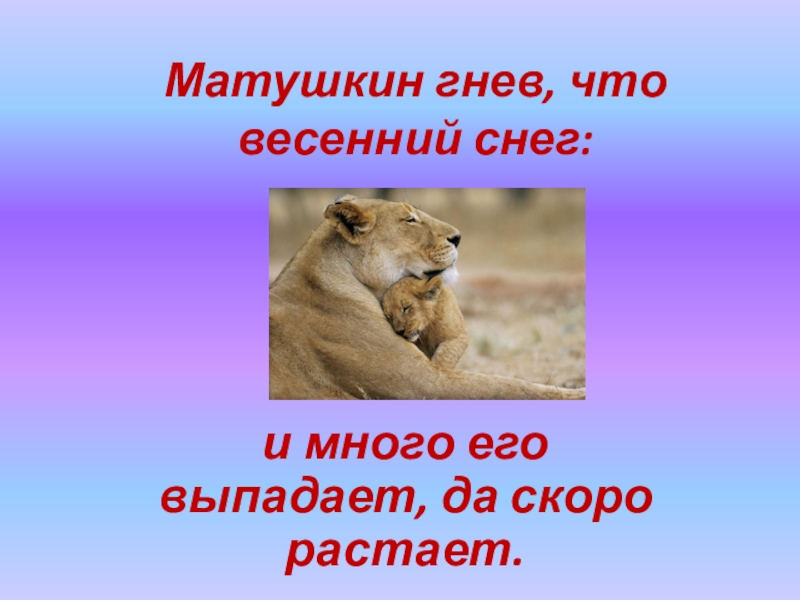 Матушкин гнев, что весенний снег:и много его выпадает, да скоро растает.
