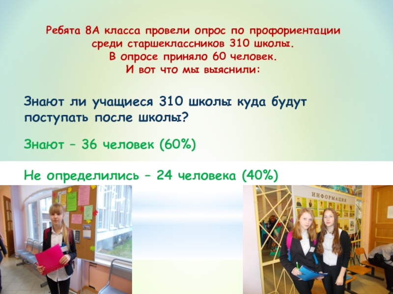 Слайд 5Ребята 8А класса провели опрос по профориентации
