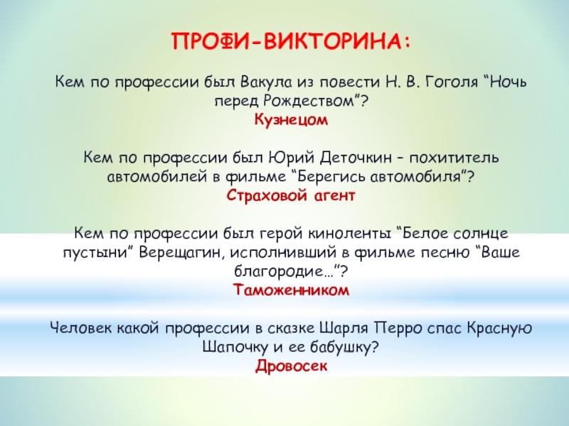 Слайд 10ПРОФИ-ВИКТОРИНА: