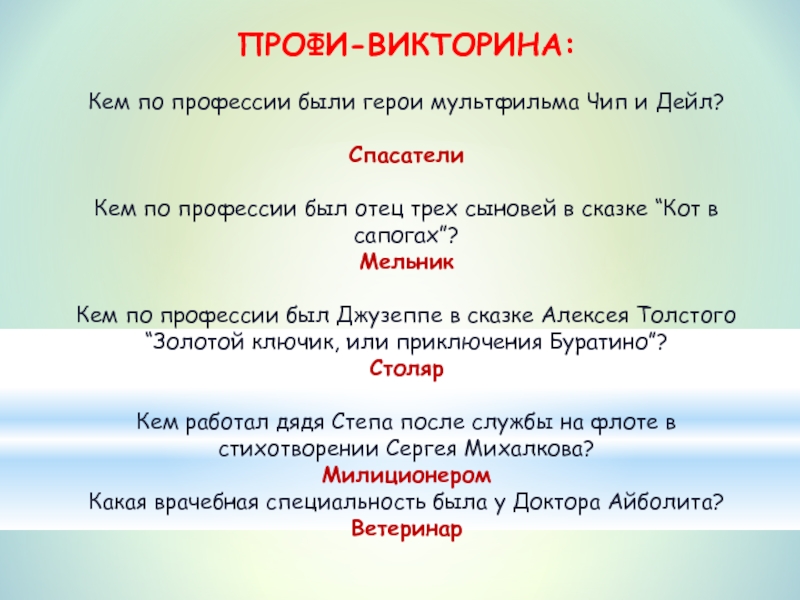 Слайд 11ПРОФИ-ВИКТОРИНА:
