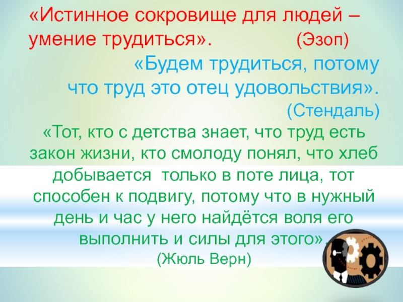 Слайд 15«Истинное сокровище для людей – умение трудиться».