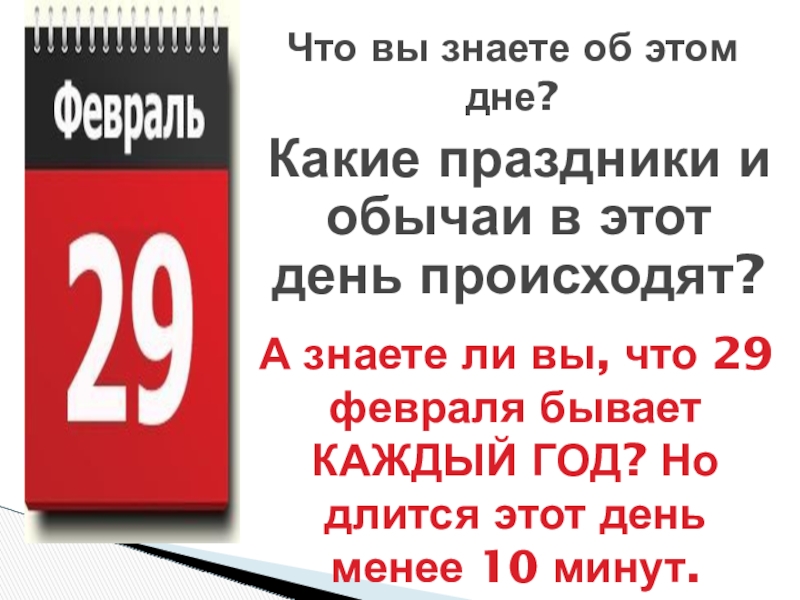 А знаете ли вы, что 29 февраля бывает КАЖДЫЙ ГОД? Но длится этот день менее 10 минут.