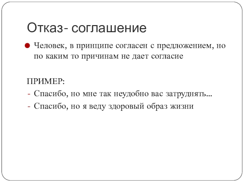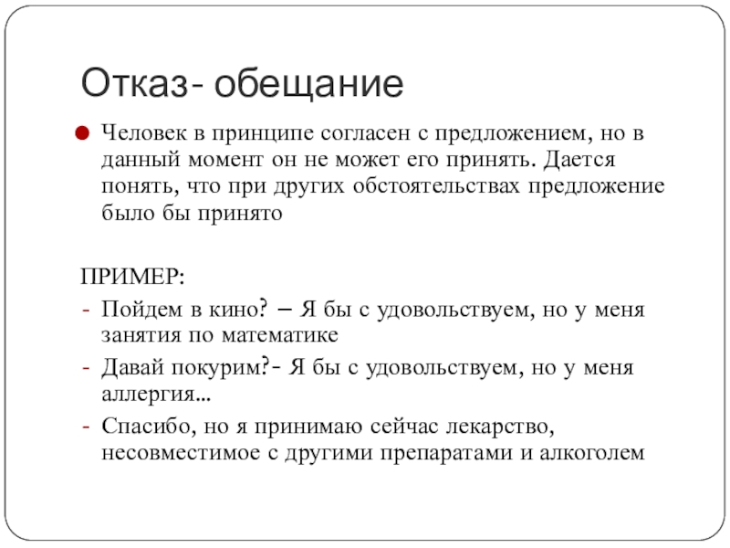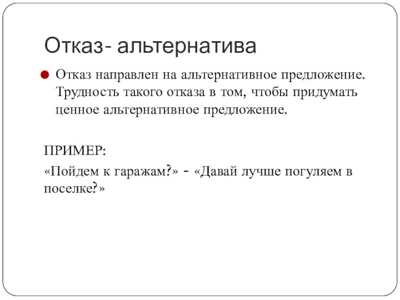 Отказ направлен на альтернативное предложение. Трудность такого отказа в том,