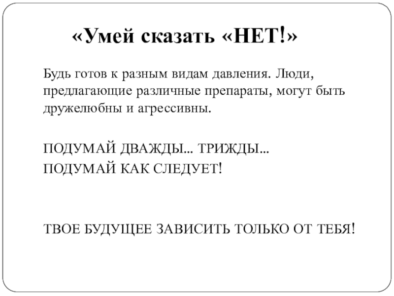 Слайд 15Будь готов к разным видам давления. Люди, предлагающие различные препараты, могут