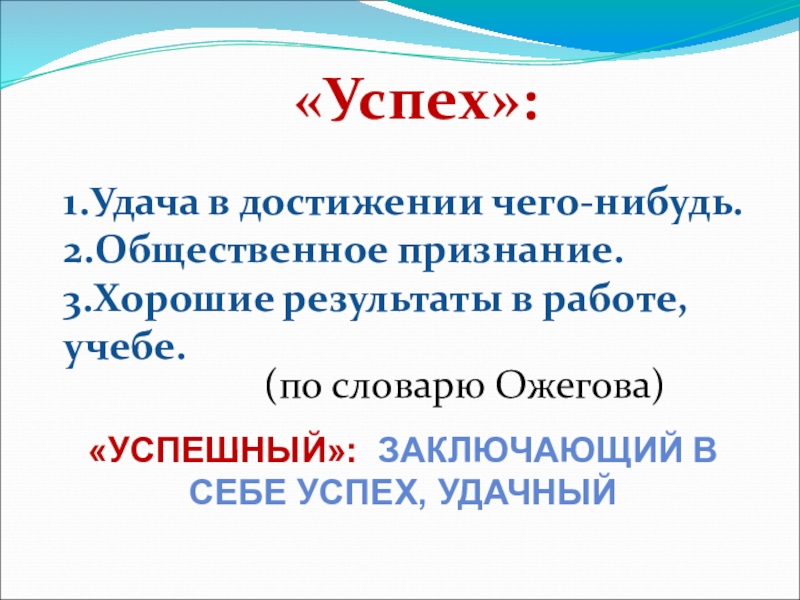 •Целеустремленность. Не будем же мы сидеть на месте и ждать, когда успех сам прибежит к нам.