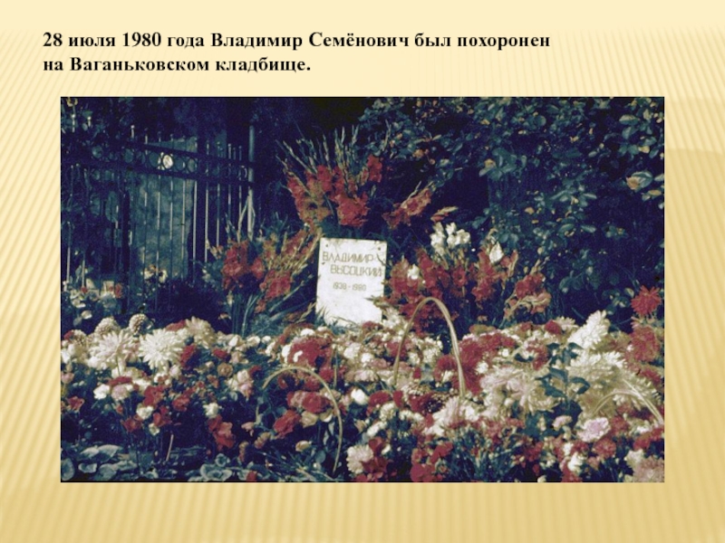 Слайд 2628 июля 1980 года Владимир Семёнович был похоронен