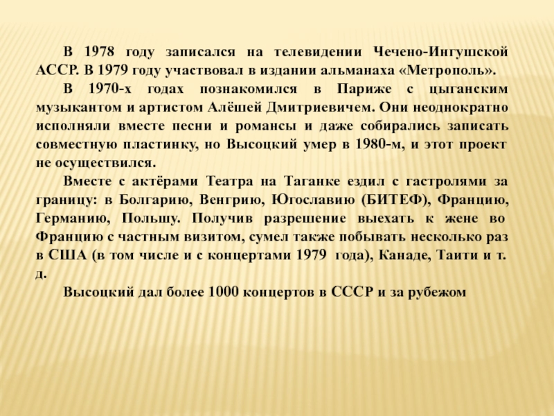 Высоцкий дал более 1000 концертов в СССР и за рубежом
