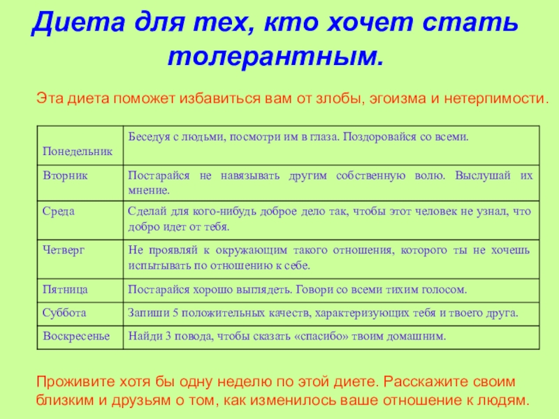 Проживите хотя бы одну неделю по этой диете. Расскажите своим