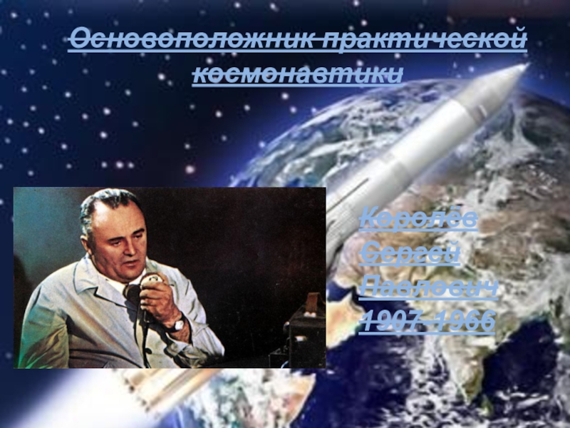 Основоположник практической космонавтикиКоролёв Сергей Павлович1907-1966