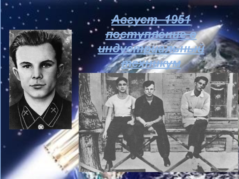 Слайд 10Август 1951 поступление в индустриальный техникум