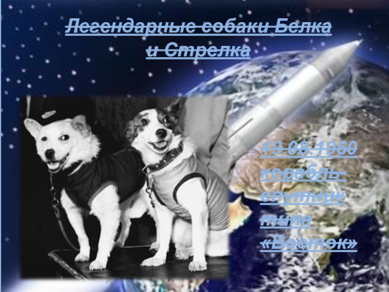 Легендарные собаки Белка и Стрелка19.08.1960корабль-спутник типа «Восток»