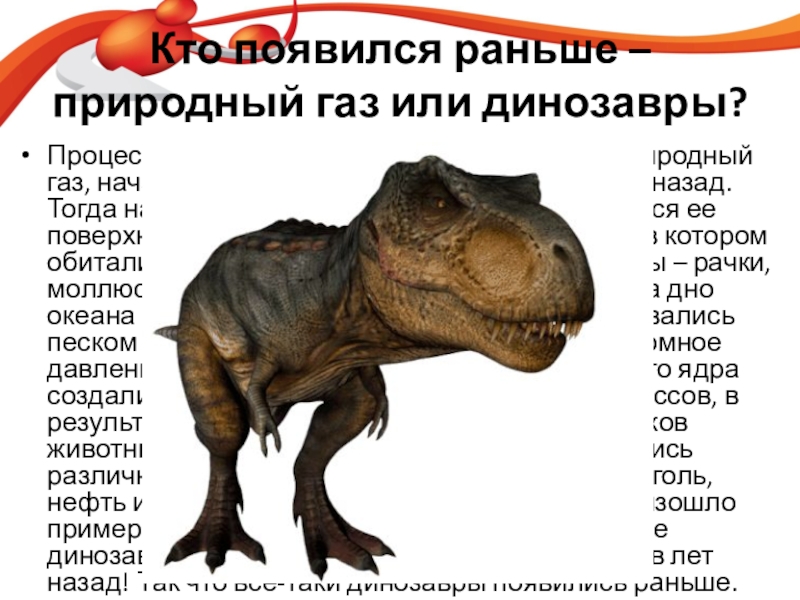 Слайд 21Кто появился раньше – природный газ или динозавры?