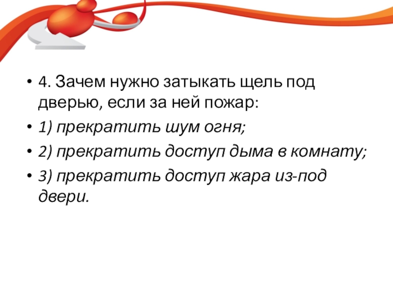 Слайд 344. Зачем нужно затыкать щель под дверью, если за ней пожар: