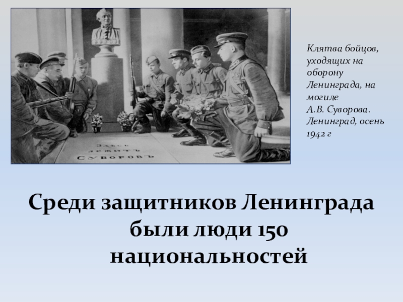 Слайд 5Среди защитников Ленинграда были люди 150 национальностей