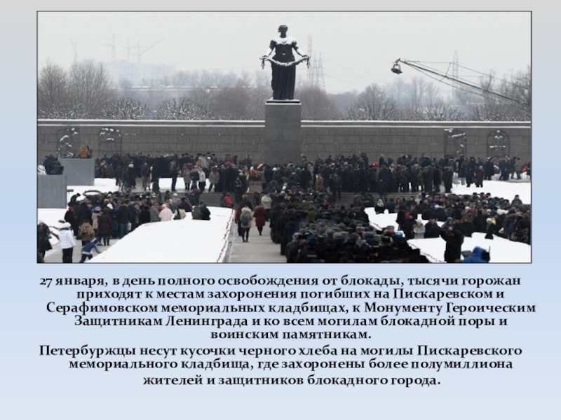 Слайд 2027 января, в день полного освобождения от блокады, тысячи горожан приходят