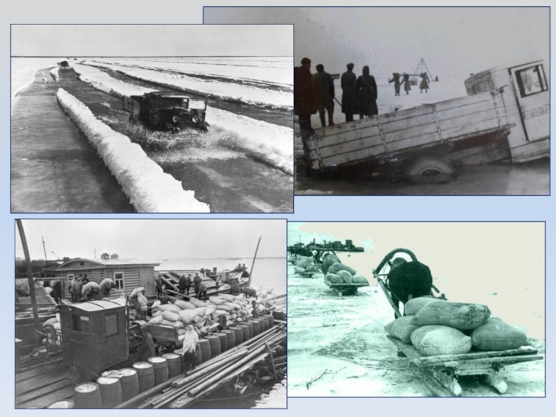 В зимний период 1941-1942 гг., когда вода на Ладожском озере замерзла, было налажено сообщение с "Большой Землей", через которое в город завозили продовольствие и эвакуировали население.