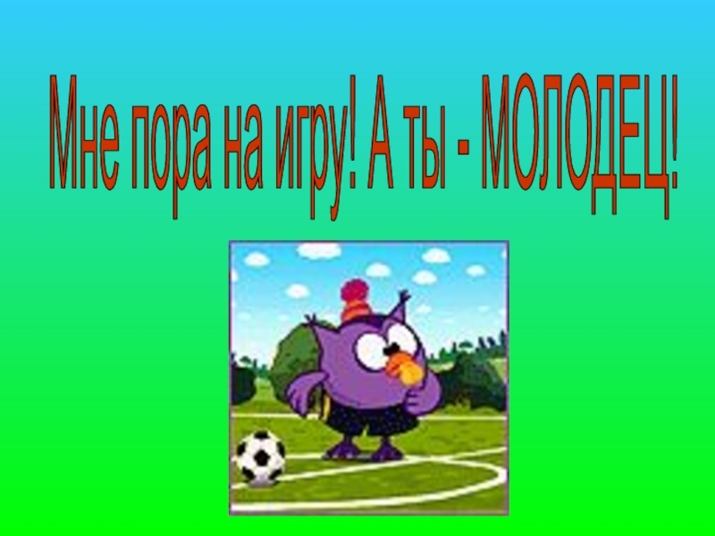 Слайд 23Мне пора на игру! А ты - МОЛОДЕЦ!
