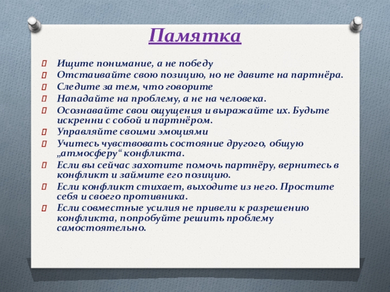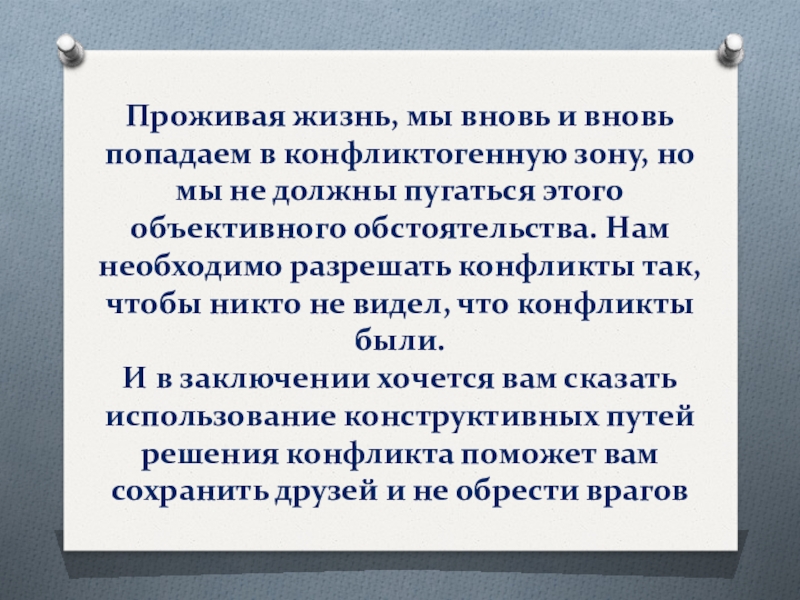 И в заключении хочется вам сказать использование конструктивных путей решения конфликта поможет вам сохранить друзей и не обрести врагов
