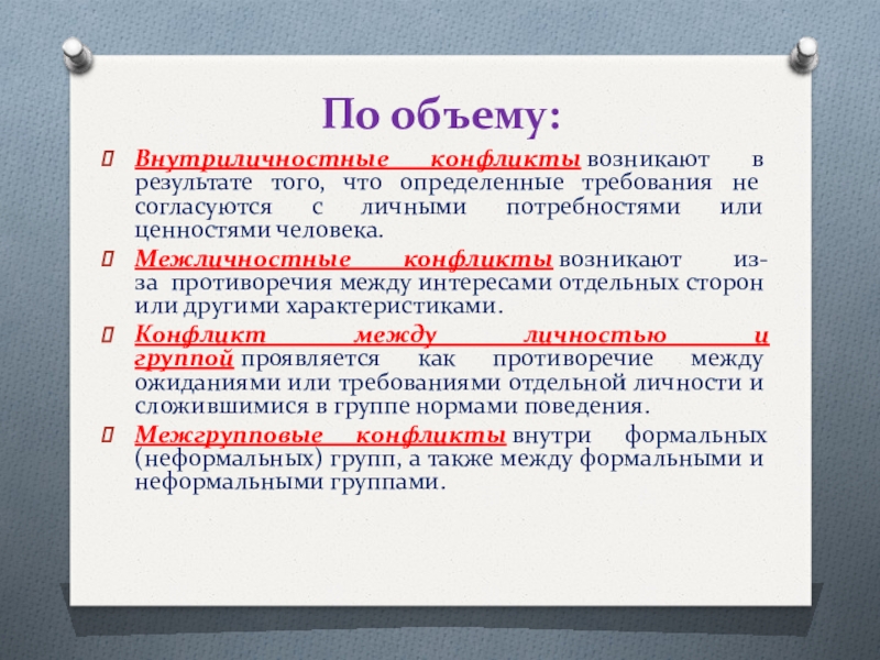 Конфликт между личностью и группой проявляется как противоречие между ожиданиями или требованиями отдельной личности и сложившимися в группе нормами поведения.