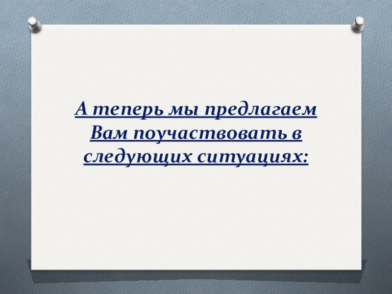 Слайд 12А теперь мы предлагаем Вам поучаствовать в следующих ситуациях: