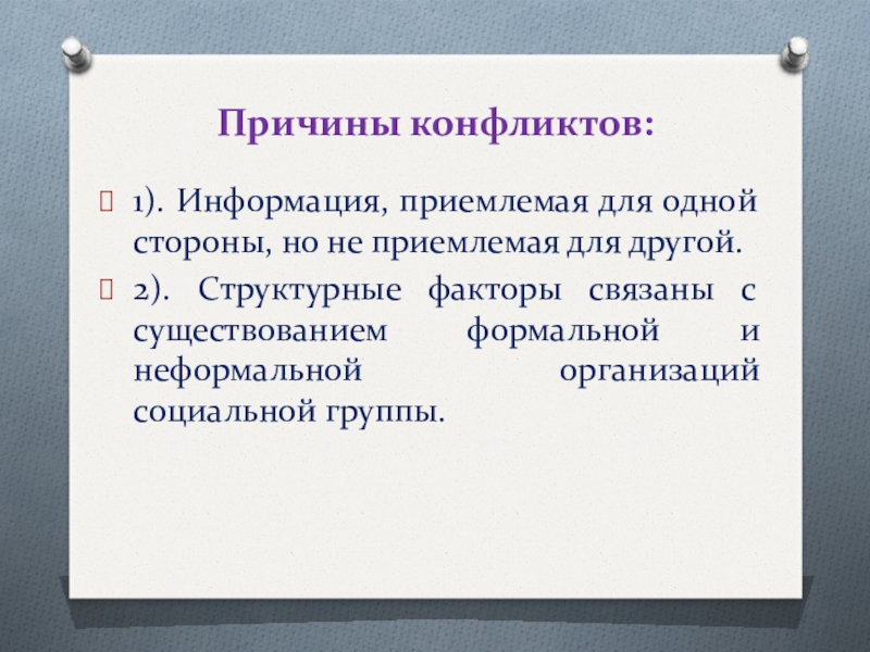 Слайд 3Причины конфликтов: