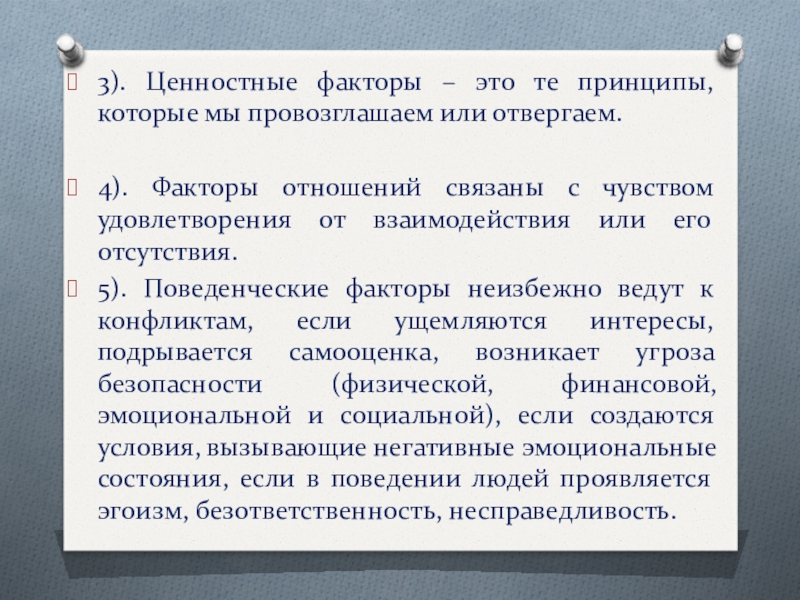 Слайд 43). Ценностные факторы – это те принципы, которые мы провозглашаем или