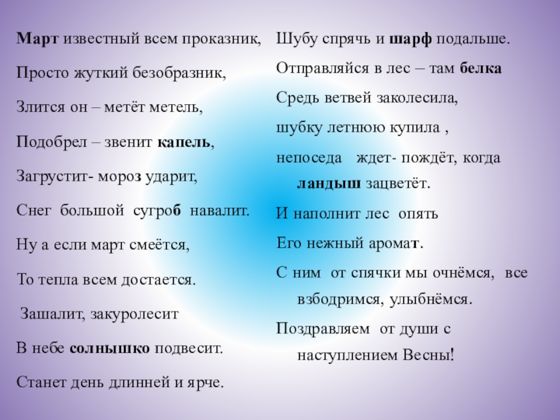 С ним от спячки мы очнёмся, все взбодримся, улыбнёмся.