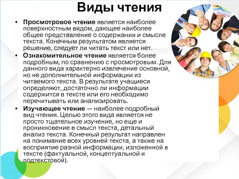 Просмотровое чтение является наиболее поверхностным видом, дающее наиболее общее представление о