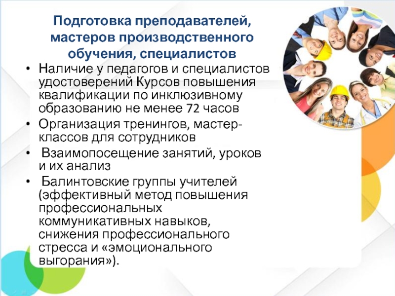 Слайд 20Подготовка преподавателей, мастеров производственного обучения, специалистов